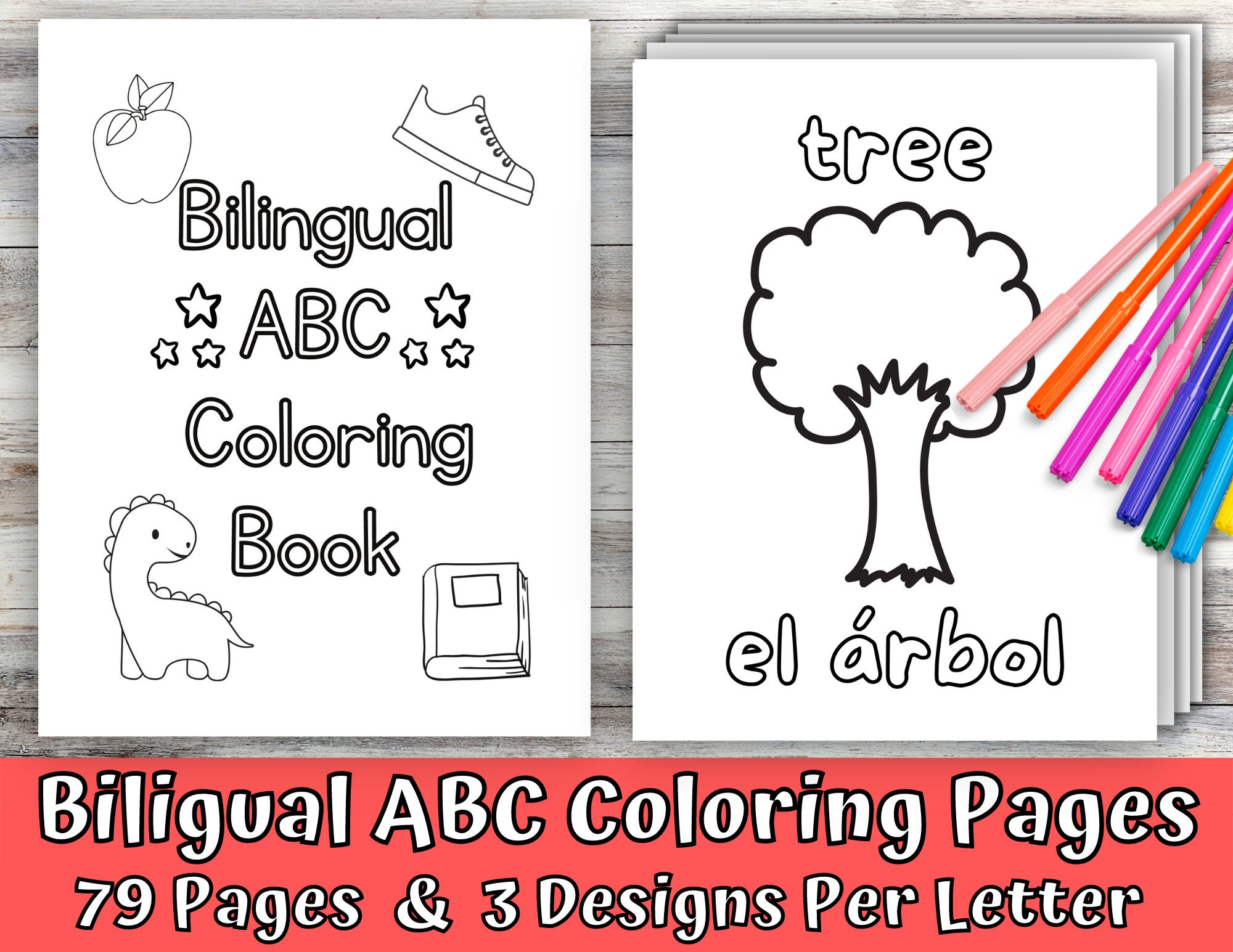 ABC Coloring Pages for Kids, Spanish Worksheets, Bilingual Baby’s First Book, Spanish Printable, Alphabet for Toddlers, Bilingual Alphabet